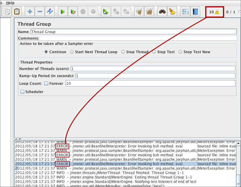 Indicator shows number of ERROR/FATAL messsages in logs, it can be clicked to toggle Log Viewer panel
