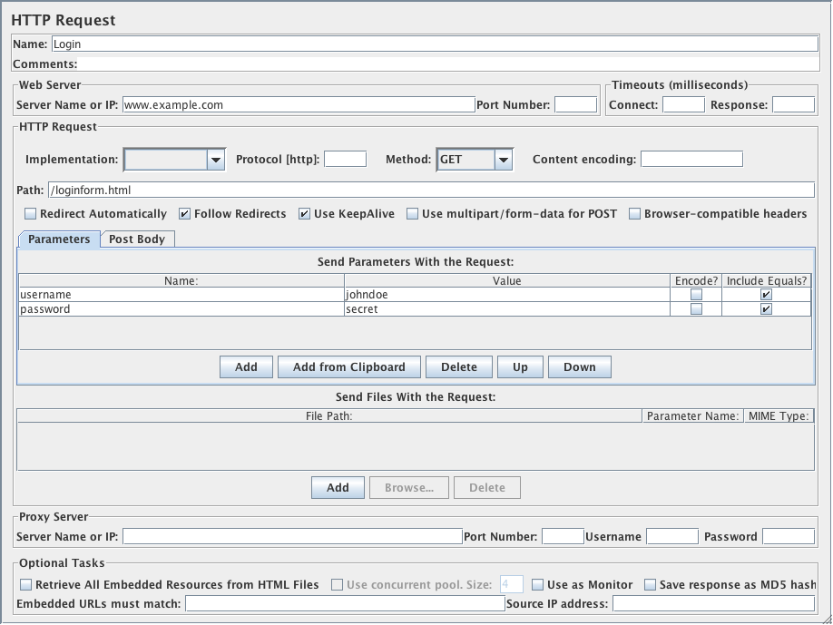 Then, select the HTTP Request element in the tree and edit the following properties