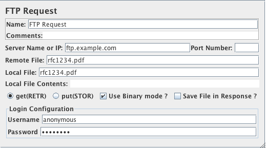This controller lets you send an FTP "retrieve file" or "upload file" request to an FTP server.
