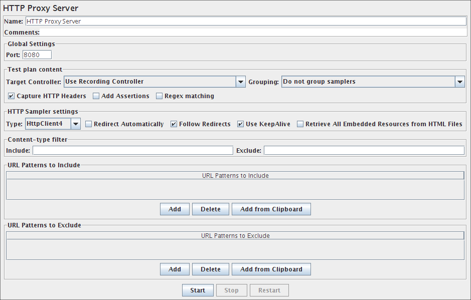 your browser's proxy settings. Now, you may want to sort and re-order the test script, add timers, listeners, a