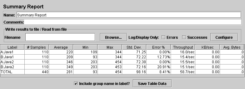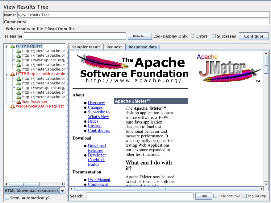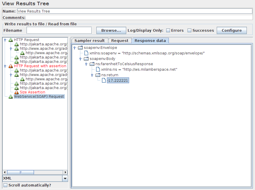 The sample results have various attributes (success/fail, elapsed time, data size etc) and can be viewed in the various listeners.