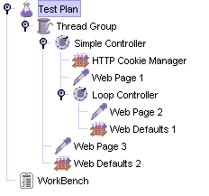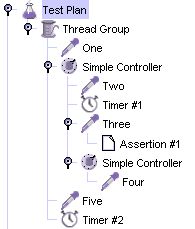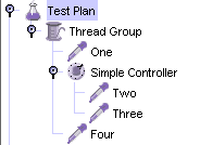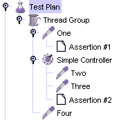 The JMeter test tree contains elements that are both hierarchical and ordered. Some elements in the test trees are strictly hierarchical (Listeners, Config Elements, Post-Procesors, Pre-Processors, Assertions, Timers), and some are primarily ordered (controllers, samplers). When you create your test plan, you will create an ordered list of sample request (via Samplers) that represent a set of steps to be executed. These requests are often organized within controllers that are also ordered. Given the following test tree: